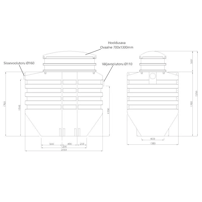 - Materjaliks on HDPE, kõrge tihedusega polüetüleen (tihedus 940 kg/m3).